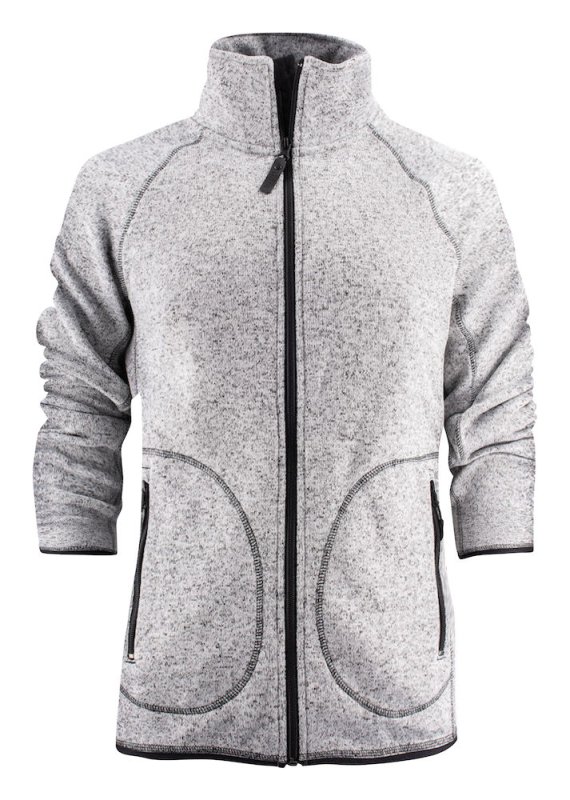 Ladies heavy knit fleece jacket with decorative flatlock seams and elastic tipping. Zippers at centre front and front pockets. Brushed on the inside for a soft feeling. Anti-pilling treated. • 100% Polyester • 320 g/m2 • 135 grey mélange • XS–XXL