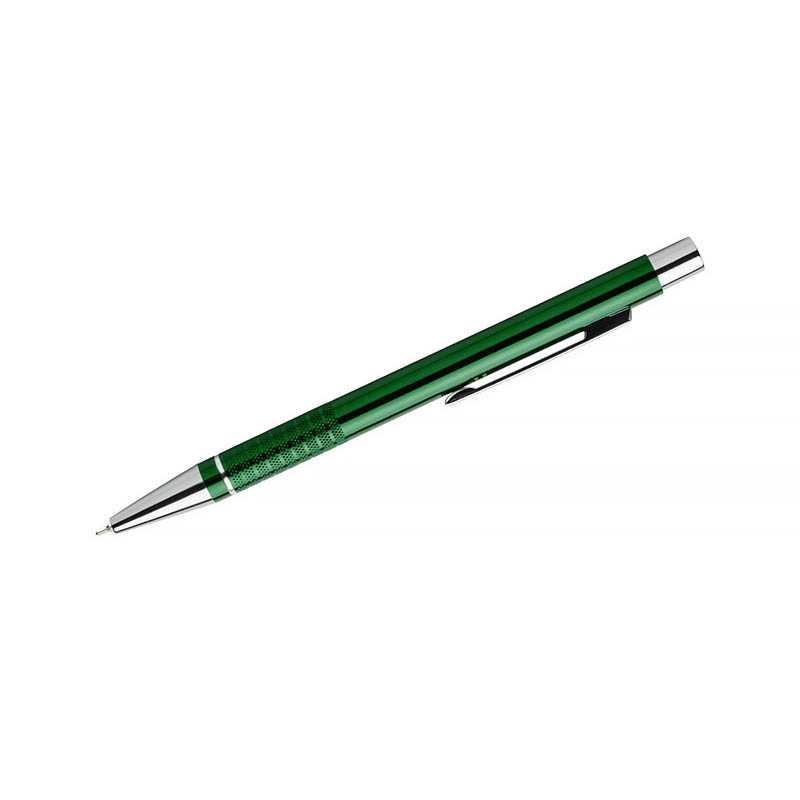 BONITO pen je klasická elegantní kovová pera v metalických barvách se chromovým povrchem. Vyrobeno z hliníku. Tělo je ozdobeno stříbrným prstenem na spodní straně a pásky s jemně chromovanou strukturou. Kuličková pera obsahuje nový typ náplně s polo-gelovou inkoustem, tloušťka 0,7 mm. Vloženo modré.
