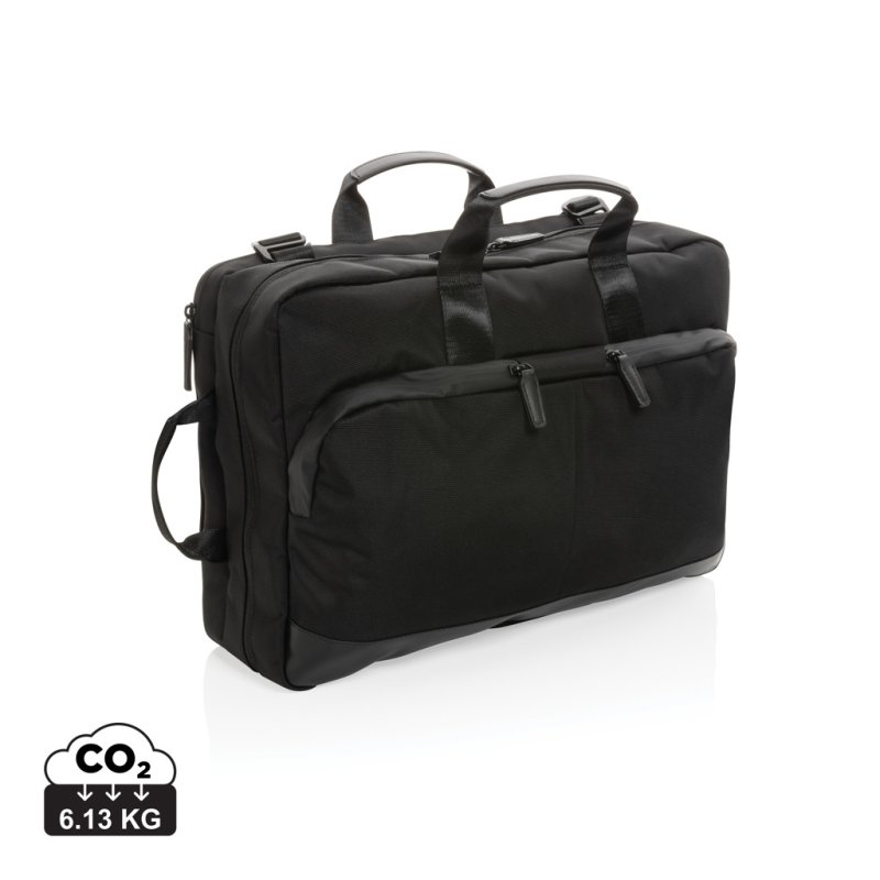 2 v 1 batoh vyrobený zo 1680D pre extra robustnosť, s detailmi z poly-kože. Jeho dizajn z neho robí jedinečný a všestranný produkt, ktorý sa dá použiť ako batoh alebo cestovná taška. Batoh má predné vrecko so skrytým zipsom, zadné vrecko proti krádeži a hlavnou priehradku s dvoma čalúnenými vreckami pre notebook až 15.6 "a tablet do 10.5". Zahŕňa popruh na kufor. Dve časti tohto batohu sa dajú použiť samostatne alebo ako jeden kus. Dodávané v netkanej taške. Kapacita do 26 l. Produkt obsahuje správu o kvalite. 300 x 420 x 200 mm | Batoh: 300 x 420 x 75 mm | Cestovní taška: 300 x 420 x 130 mm | Taška: 550 x 580 x 210 mm