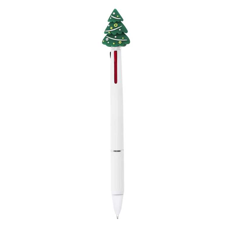 NOVINKA 2025 XMASS. 3-in-1 multicolour pen with push-button mechanism. White ABS body with glossy finish and soft-touch white rubber grip with matte effect. Includes 3 ink cartridges in blue, red and black.
