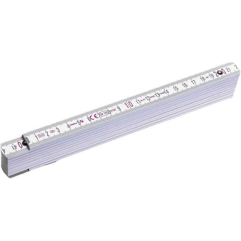 Wooden Stabila foldable ruler with a total length of 2 meters. Scale is in cm. The ruler has a shockresistent coating and extra strong, stainless steel hinges. With integrated angle schema. PEFC certificate, accuracy class 3.