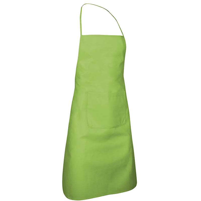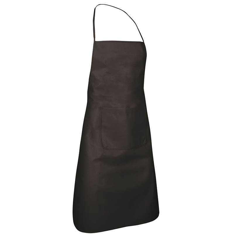 Pocket Non-Woven Fabric Bib Apron.Made of non-woven fabric with an embossed finish, providing flexibility and repellent properties.Side straps for optimal waist adjustment, tied with a knot and a slim neck strap for a better fit.Hem-stitched contour seams for added strength and durability.Wide central waist pocket for convenient storage.Suitable marking methods: screen printing.Ideal as hospitality clothing, for a personalised gift and a corporate gift.