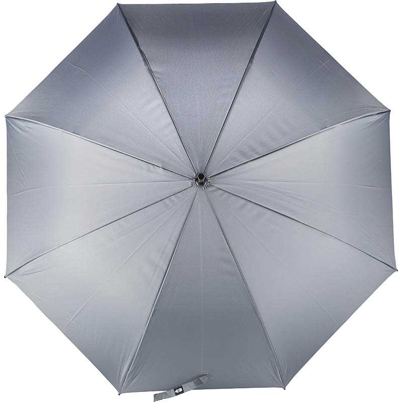 Automatic polyester (210T) umbrella with eight panels. Silver coloured underside. Metal frame and foam handle. Push button close.