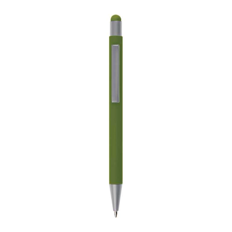 NOVINKA 2025. Guľôčkové pero z recyklovaného hliníka (100% rAL) s dotykovým hrotom v hornej časti pera. Modrý atrament. o10 x 143 mm