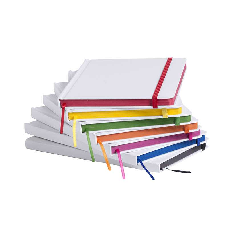 Blok so 100 čistými listami v papierových doskách a farebnou gumičkou, A5.