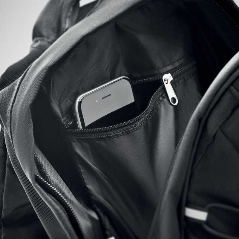 Vysoko reflexný ruksak vyrobený z 190T reflexného materiálu a 600D polyesteru s priehradkou na notebook, bočným držiakom na fľašu a malou prednou priehradkou. Zaisťuje maximálnu viditeľnosť vo dne i v noci.