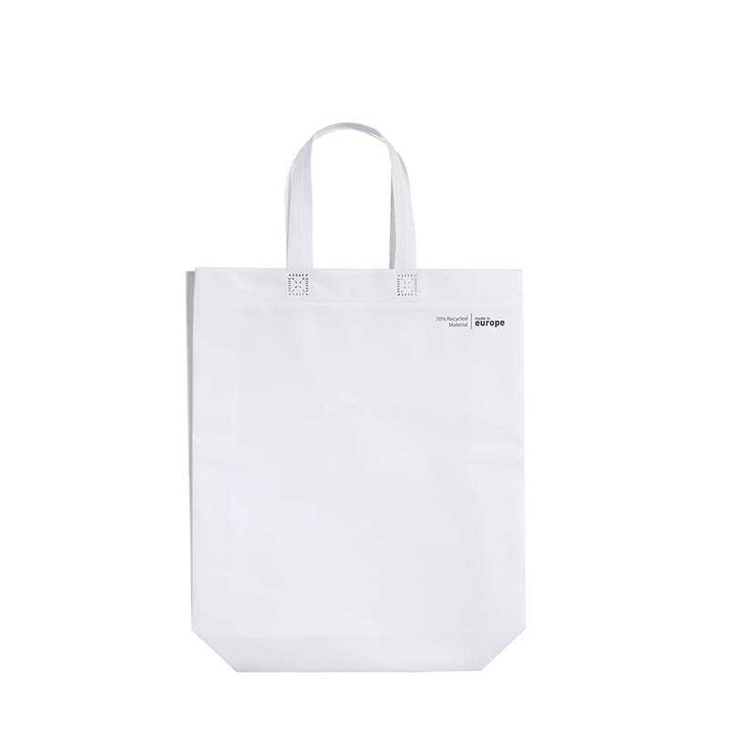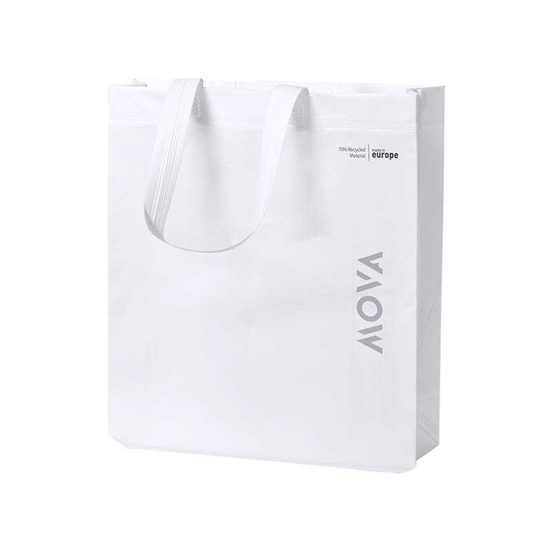 NOVINKA 2025. Nature line bag, made of 120g/m2 recycled non-woven with lamination. Made in Europe, with heat-sealed finish, gusset, long handles and eco/made emblem on the bag.