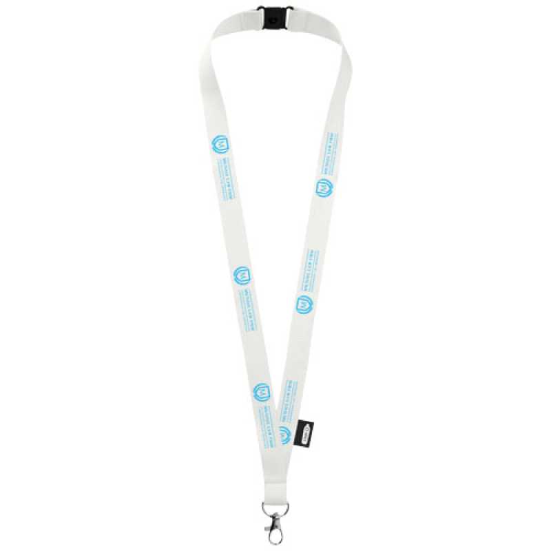 RPET šnúrka na krk, vyrábaná na zákazku s kovovou karabínkou, otváračom na fľaše a bezpečnostnou sponou z plastu z pšeničnej slamy. Sublimačná potlač na oboch stranách. Min. mn.: 100 ks.