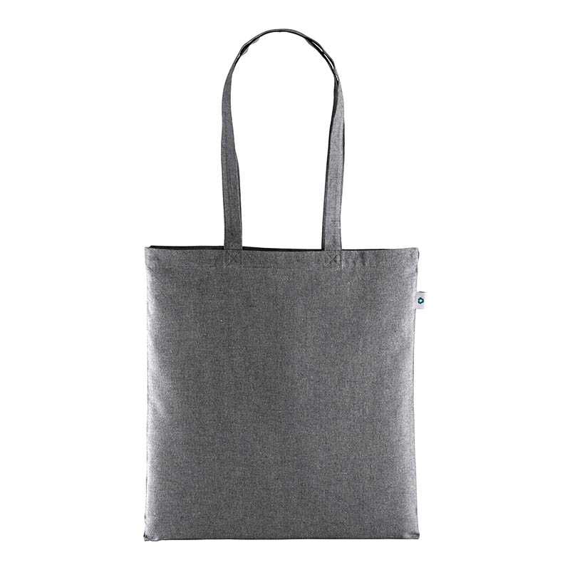 Taška z recyklovanej bavlny (70 %) a polyesteru (30 % rPET) (140 g/m2) z 68 cm rukoväte . Recyklovaná bavlna je nefarbená. Surovina sa používa vo svojej pôvodnej forme a farbe, bez použitia farbív alebo bieliacich chemikálií, čo prispieva k nižšiemu vplyvu. 380 x 410 x 100 mm