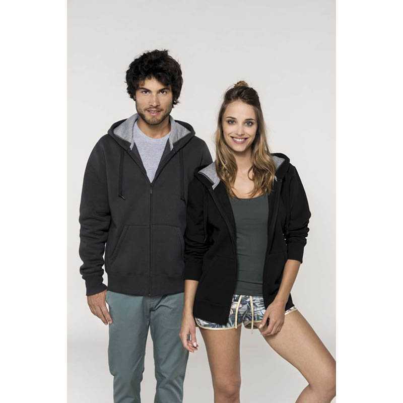 80 % česaná bavlna/20 % polyester.Nekrčivý kartáčovaný flís.Silikónové pranie.Kontrastná páska pri krku.Vnútorná kapucňa vo farbe prskaná sivá pre všetky farby, okrem tela v oxfordskej sivej, kde je vnútorná kapucňa vo farbe tmavosivá.Klokanie vrecká.Rebrované manžety a pás.Certifikát STANDARD 100 podľa OEKO-TEX® č. CQ 1007/8, IFTH.