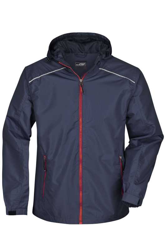 Ležérní, funkční, outdoorová bunda.Vodě a větru odolná.3 000 mm vodní sloupec.1 500 g/m2/24h paropropustnost.Podlepené švy, zipy v konstrastní barvě.Skrytý přední zip s ochranou brady.Kapuce s elastickou šňůrkou.2 boční kapsy na zip, vnitřní kapsa.Reflexn