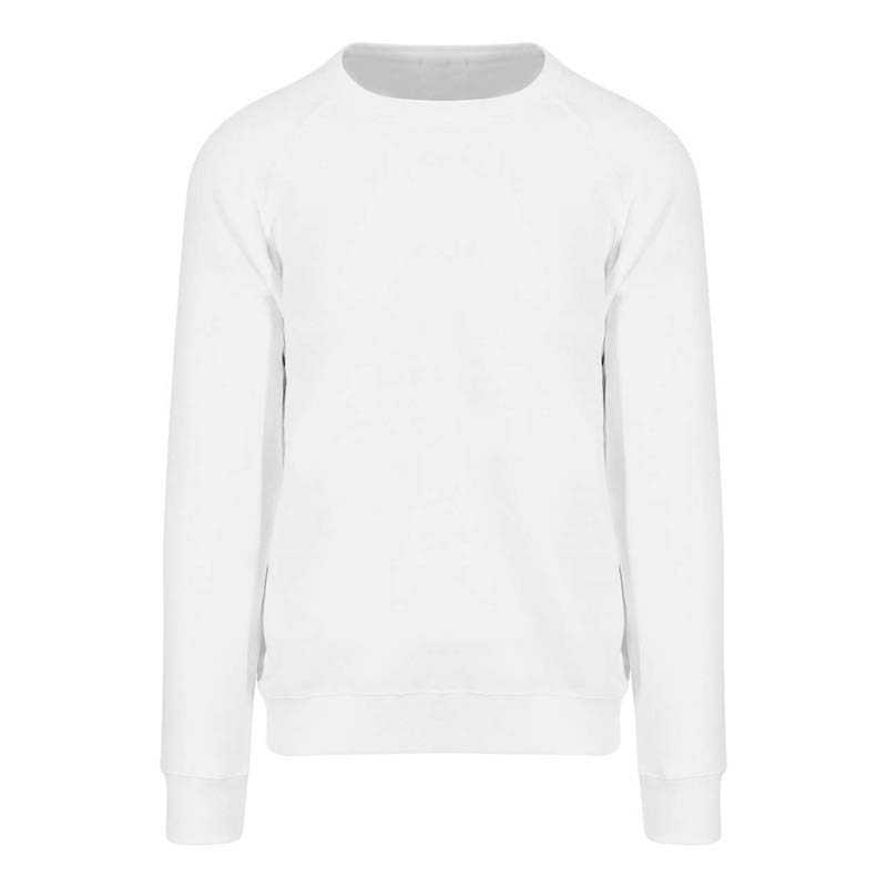 Kvalita.80 % organicky pestovaná bavlna – 20 % recyklovaný polyester.3 priadze .Kartáčovaná podšívka.Zvonku: 100 % organická bavlna.Štýl.Strihané a šité.Raglánové rukávy.2 x 2 rebrované manžety, golier a spodný okraj.Polmesiac vnútri goliera.Páska na krku.