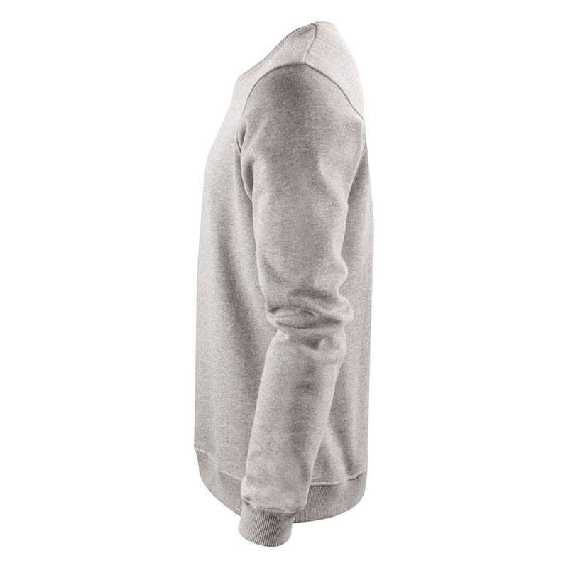 Crewneck sweater with half-moon in the neck. Brushed inside. Ribbed ending at sleeves and bottom hem. Oeko-Tex 100. Colors: 120 grey melange, 600 navy, 704 moss green, 900 black New version 85% organic cotton, 15% recycled polyester, 300 g/m2 Old version 80% organic cotton, 20% recycled polyester, 300 g/m2 S-3XL