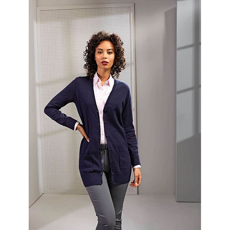 Dlhý kardigán s V-výstrihom.Zapínanie na 7 gombíkov.Dve predné náprsné vrecká.Rebrovaný úplet pri krku, manžetách a spodnom okraji.Jemný úplet.Jednoduchá údržba.