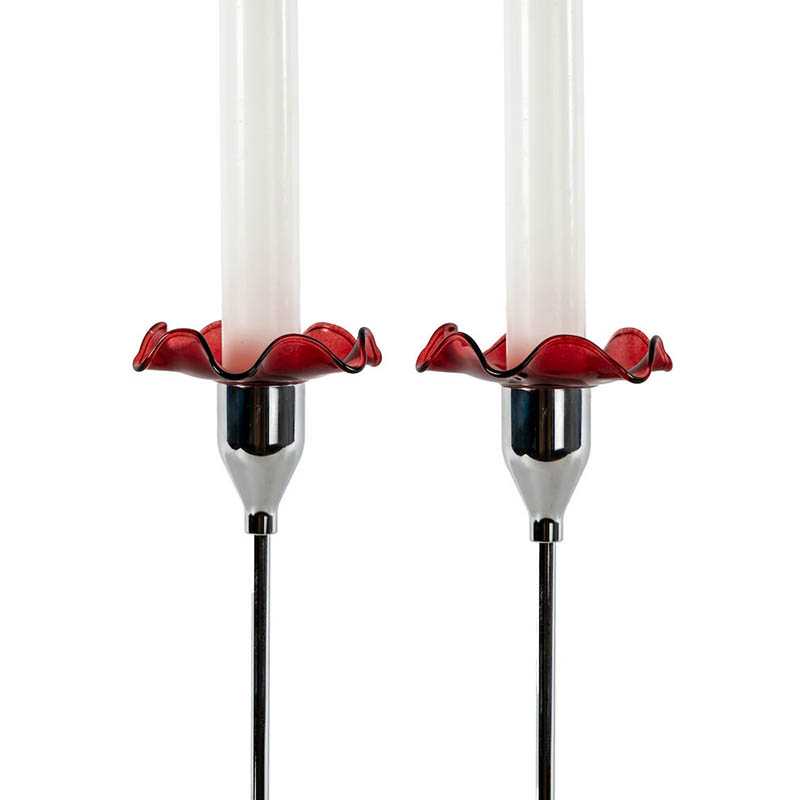 Beloved candle cuff - what a comeback! The Viva candle cuff is a practical and decorative solution to prevent dripping wax from lit candles, while transforming your candle holder into something new. Inspired by vintage style and contemporary organic shapes, made of glass. Available in clear, amber, and bordeaux colors. Comes in a gift box. Designed by Studio Sagaform. Materiał: hand-blown glass Waga: 24 g Size: width 7,5 cm, height: 1,5 CM Color: Wine red Technique Comment: Handmade; size, shape, and color may vary.