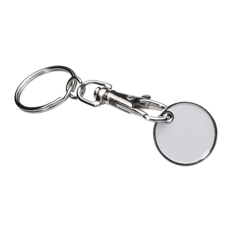 Kľúčenka s karabínkou a s odnímateľným žetónom do nákupných vozíkov z kovu.