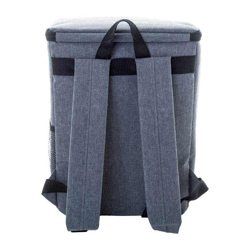 Chladiaci batoh RPET s hlavným vreckom na zips s PEVA výstelkou, bočnými sieťovanými vreckami a polstrovanými ramennými popruhmi. S výrazným štítkom RPET. Polyester 600D RPET.