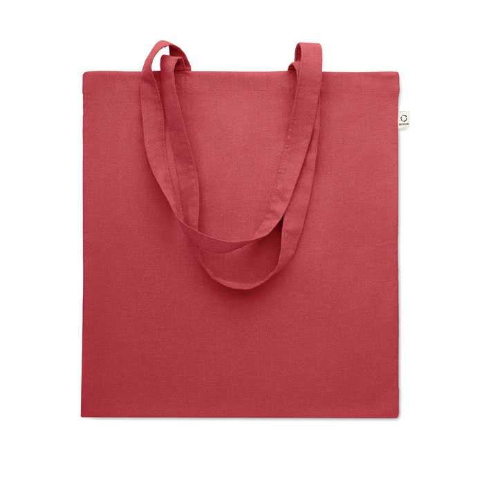 Nákupní taška z recyklované předspotřební bavlny (70 % recyklovaná bavlna a 30 % RPET) s dlouhými uchy. 140 gr/m2. Tato položka se po otisku může zmenšit.