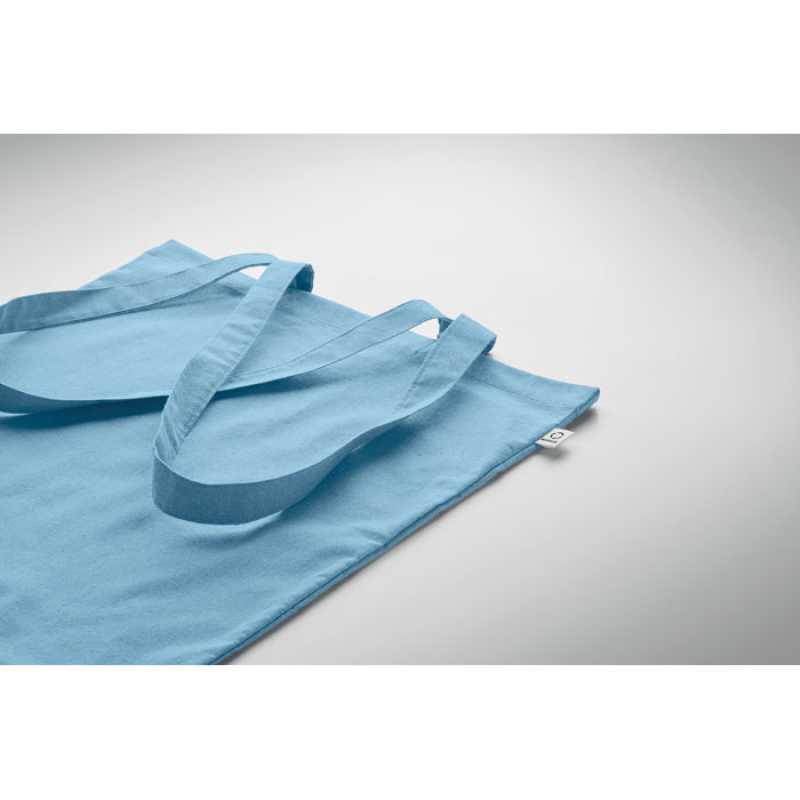 Nákupní taška z recyklované předspotřební bavlny (70 % recyklovaná bavlna a 30 % RPET) s dlouhými uchy. 140 gr/m2. Tato položka se po otisku může zmenšit.