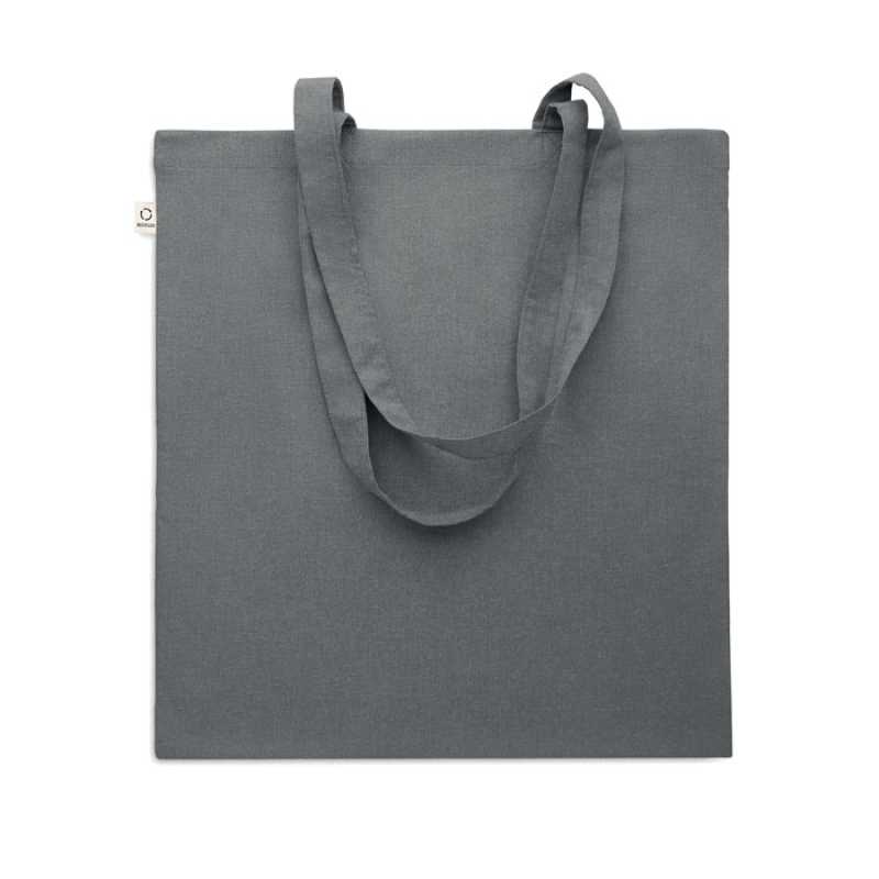 Nákupní taška z recyklované předspotřební bavlny (70 % recyklovaná bavlna a 30 % RPET) s dlouhými uchy. 140 gr/m2. Tato položka se po otisku může zmenšit.