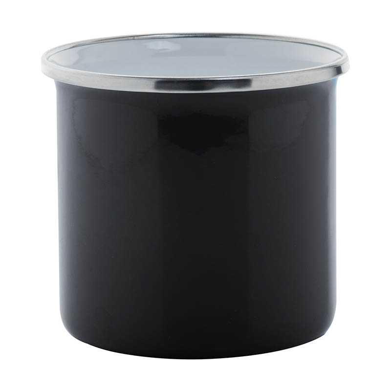 Enamel drinking cup VINTAGE CUP: made of stainless steel, with handle, coloured outside with a white interior, silver stainless steel rim, capacity approx. 350 ml