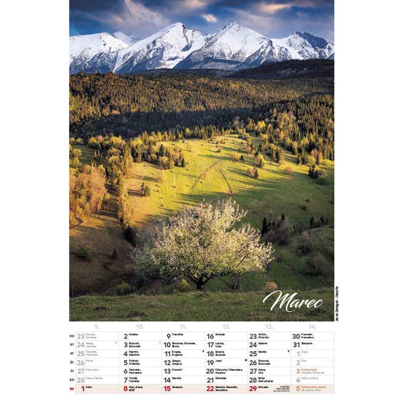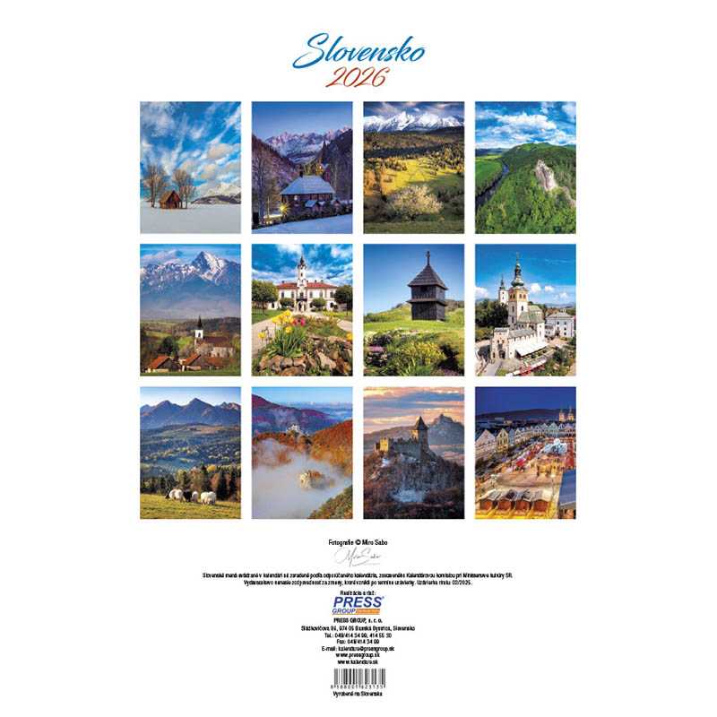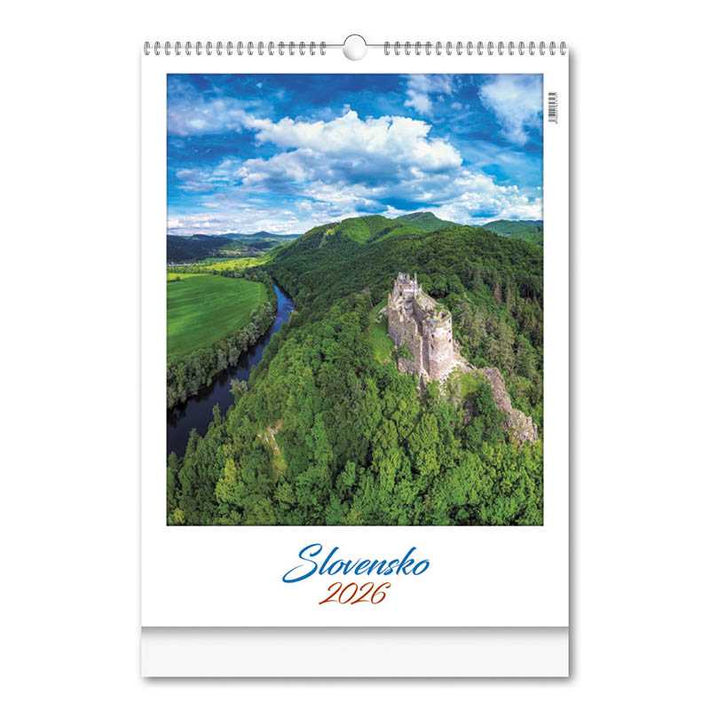 Prírodné a kultúrne dedičstvo Slovenska na stránkach kalendára v obľúbenom výškovom formáte. Fotografie dopĺňa slovenské kalendárium so zvýraznenými sviatkami a nedeľami.Priestor na potlač: 30 x 6 cm. Rozsah: 14 listov. Rozmer: 30 x 34 x 1 cm. Hmotnosť: 0,25. Papier: 135 g/m2. Väzba: dvojitá špirála. Kalendárium: slovenské.