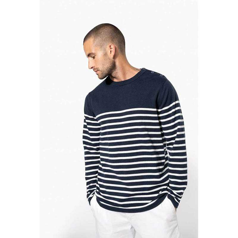 100 % bavlna.Gauge 12.Otvor na ľavom ramene s 3 gombíkmi v rovnakej farbe.1 x 1 rebrovaný výstrih.Pletené manžety a spodný okraj s dvojitou hrúbkou.