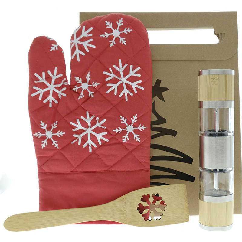 Varecha, Kuchynská chňapka, Mlynček na soľ a korenie. Darčeková taška 30x23x10 cm