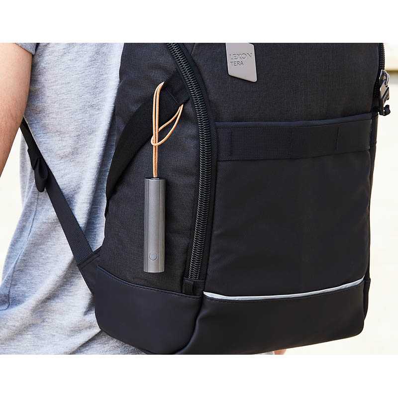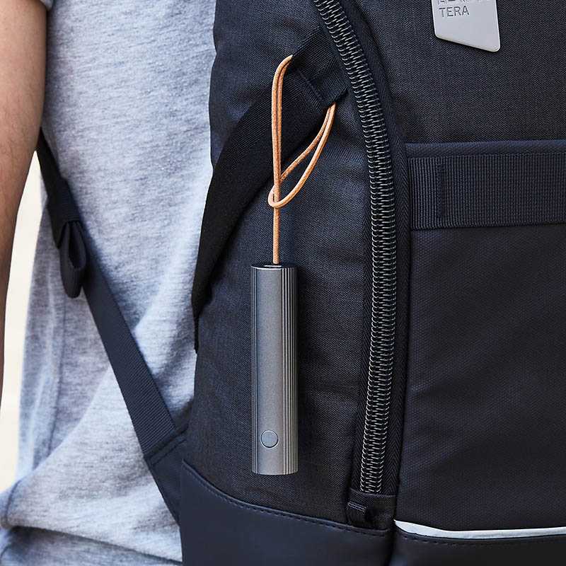 Bag light – Super bright LED – Battery life: up to 4 hours after a full charge - Standby time: up to 6 months - Charging time: 1,5hRechargeable on USB-C port (cable included)Material: aluminium / ABS / leatherSuggested branding: laser - pad print
