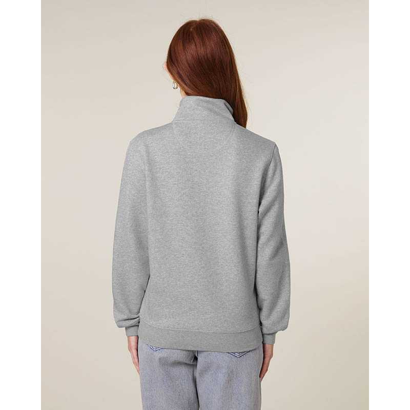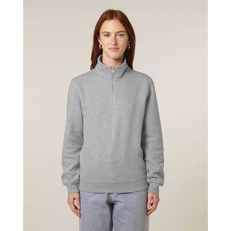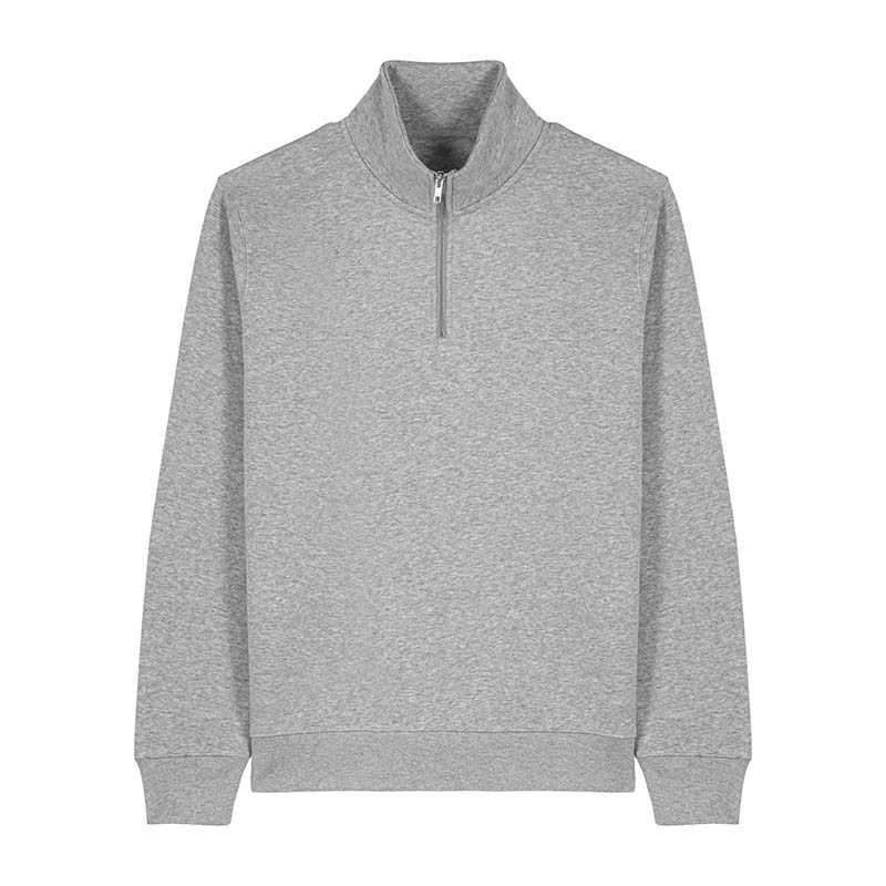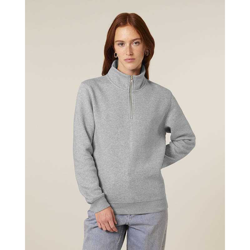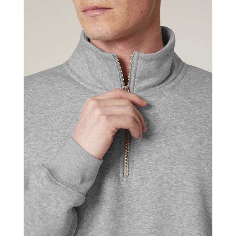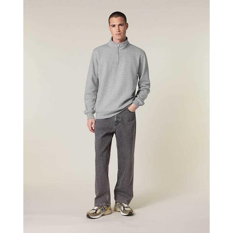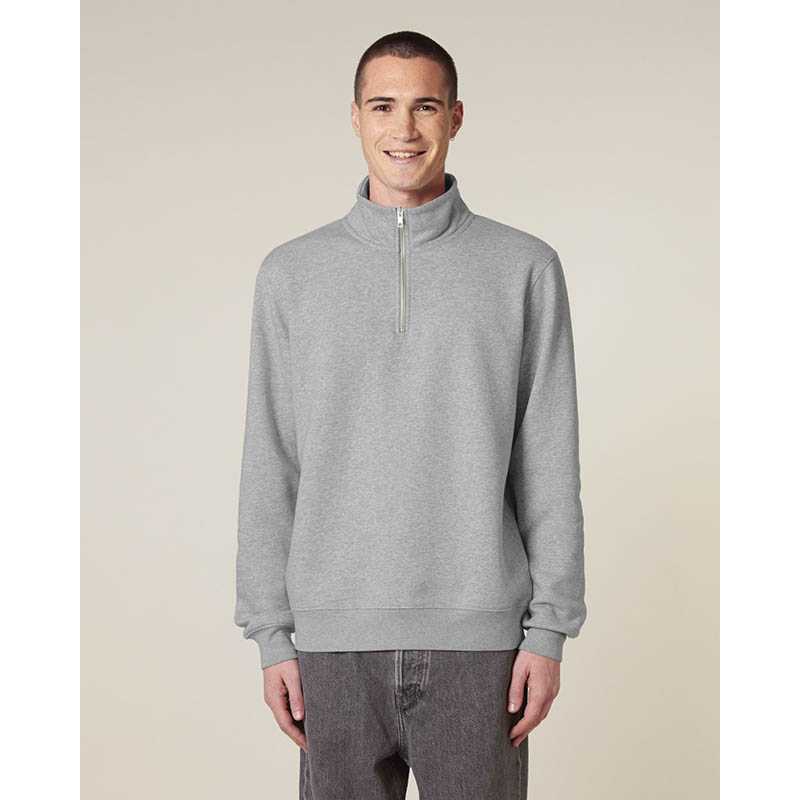 Mikina na polovičný zips s česanou podšívkou v unisex veľkostiach. Dve predné vrecká, 2x2 rebrovanie na okraji rukáva a spodnom leme. Moderný strih. Materiál: 80% organická bavlna 20% recyklovaný polyester. Gramáž: 280 g/m2. Certifikáty: GOTS, Fairtrade Cotton, Nordic Swan Ecolabel, Oeko-Tex