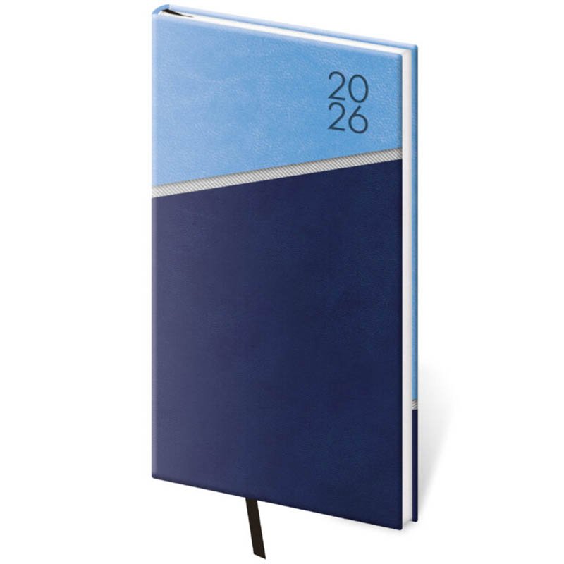 Diáre Bora.Dosky diárov Bora sú kombináciou dvoch farieb matného materiálu Vivella, ktorý je veľmi príjemný na dotyk. Táto koženka umožňuje dosiahnuť perfektné výsledky pri razbe bez fólie.. Diár obsahuje: osobné údaje, plánovač dovolenky (mesačný prehľad), plánovací kalendár, medzinárodné sviatky, ročný výhľad, týždenný layout, adresár. Formát diára: 80 x 150 mm. Rozsah diára: 128 strán. Kalendárium: týždenné vreckové. + pútko na pero