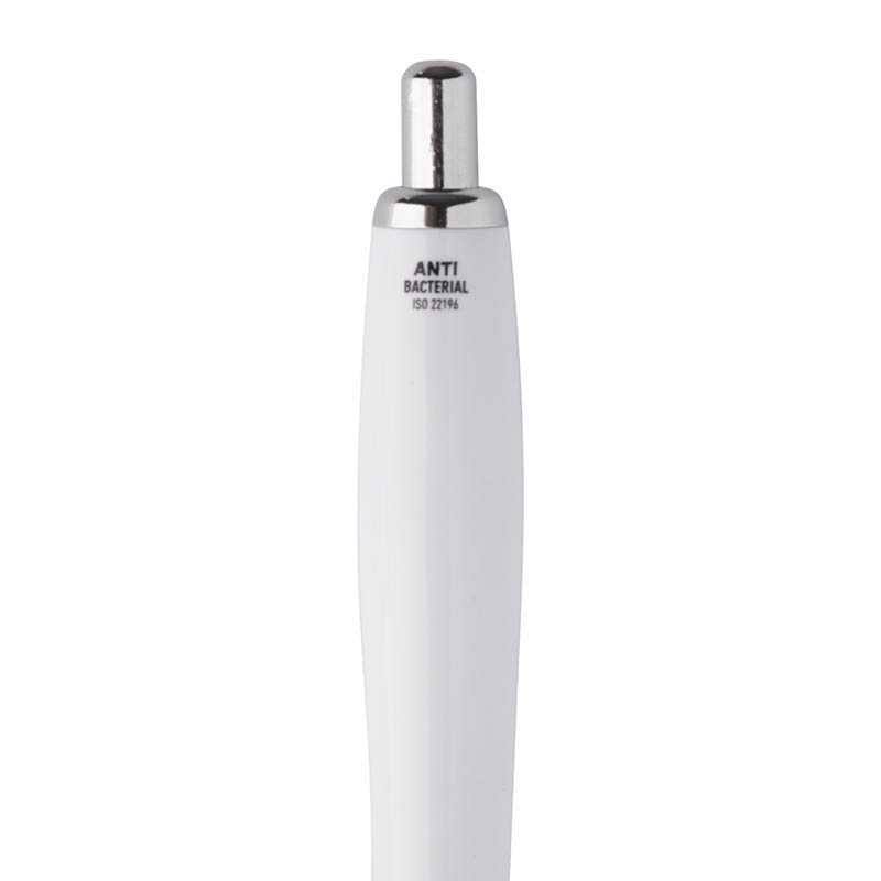Plastové guľôčkové pero s antibakteriálnou úpravou tela a chrómovými časťami. Obsahuje prísadu nano striebra, ktoré zabraňuje rastu baktérií na tele pera. So stláčacím mechanizmom a modrou náplňou. V súlade s ISO 22196: 2011.