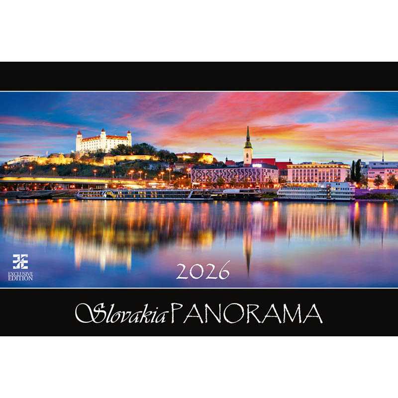 Nástenný kalendár Slovakia Panorama 2026. Formát kalendára: 48,5 x 33,4 cm. Kalendárium: slovenské mesačné menné. Rozsah kalendára: 14 listov. Twinová väzba. Priestor na potlač: 48,5 x 7 cm. Autor: Miroslav Konfál