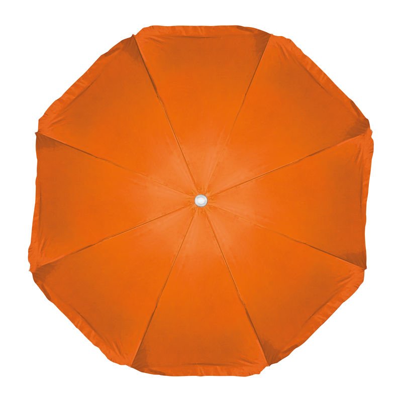 NOVINKA 2025. Foldable beach umbrella with 8 panels its compact design in four sections facilitates assembly. Made of durable nylon with silver-gray interior and UV protection, with a diameter of 160 cm, adjustable height, and white metalized tubes. The ribs are made of fiberglass for greater strength and wind resistance. Comes in a practical transparent case matching the umbrella, with a cord closure and transport strap.