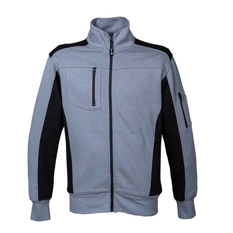 Bicolour sweatshirt jacket with contrast zipper in centre front and on front pockets. Contrast tape in de neck. 2x2 rib ending at sleeves and bottom hem. Tear-out neck label and separate woven size label. In the inner left side seam a pocket is provided for sewing in a laundry chip. Zipper pullers in contrast colour. Replacement zipper pullers sold separately. Oeko-Tex 100, OCS & GRS certified. Packed in a biodegradable bag - certified by OK compost INDUSTRIAL and TÜV AUSTRIA. Fabrics: 50% organic cotton, 50% recycled polyester, Weight: 280 g/m2 Colour: 9390 Anthracite/ Black, 9093 Black/ Anthracite, 9040 Black/ Red, 9030 Black/ Orange, 6053 Navy/ Cobalt, 5360 Cobalt/ Navy Size: S - 5XL