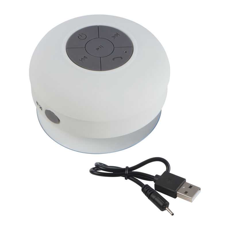Vodeodolný (IPX4 ochrana) bluetooth reproduktor s pogumovaným povrchom a veľkou prísavkou. Funkcia handsfree so zabudovanou dobíjacou batériou. Vrátane USB nabíjacieho káblu.