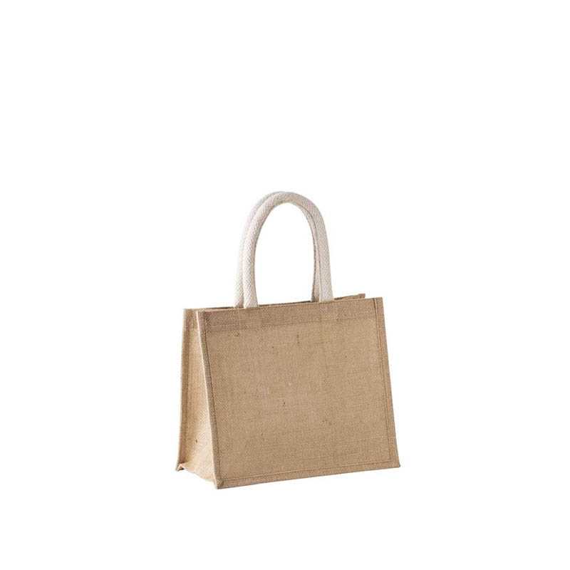 Jutová plátenná taška s bavlnenými ušami.Stredná veľkosť.Prírodná farba: Certifikát STANDARD 100 podľa OEKO-TEX® č. CQ 1164/1, IFTH.