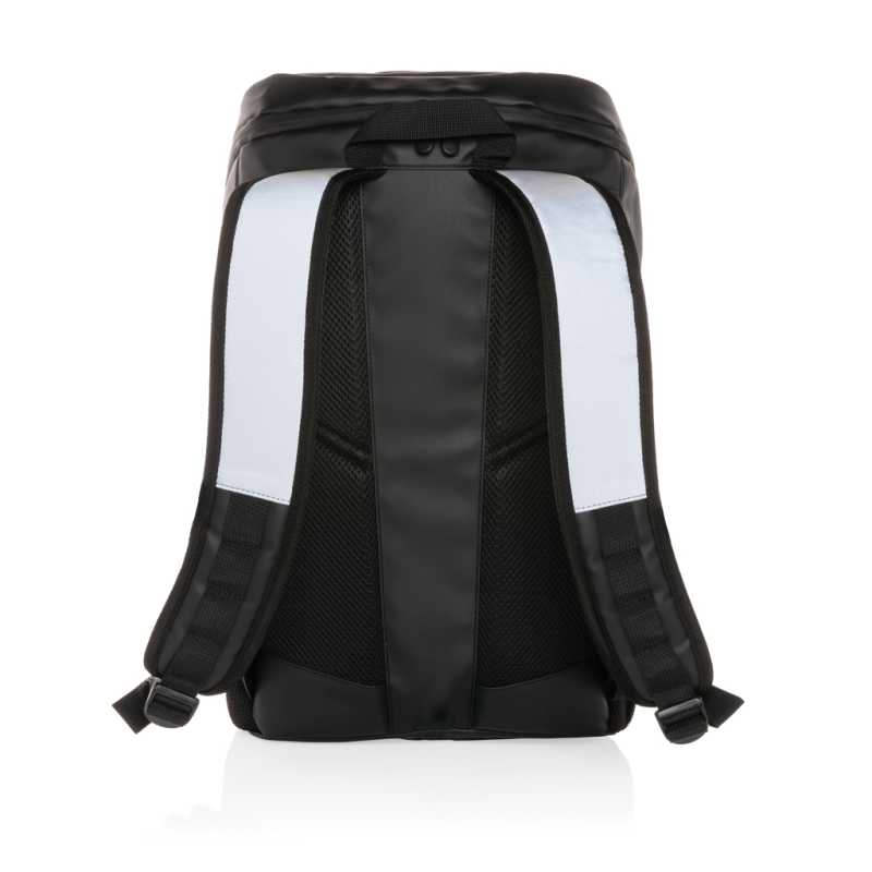 Praktický batoh z vysoko reflexného a vodeodolného PU materiálu pre každodenné použitie. Obsiahle reflexné prvky zaistia viditeľnosť a užívateľovu bezpečnosť aj v noci. Priestranný hlavný oddiel vrátane priehradky na 15,6" notebook a malého vrecká na drobnosti. Pretiahnuté zapínanie na zips umožňuje jednoduchú organizáciu batohu. Miera reflexivity je v súlade s EN 13356:2001.