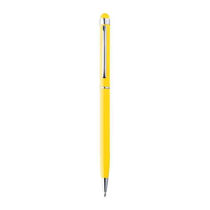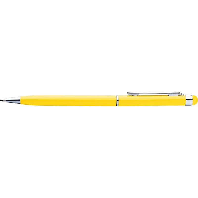 Dotykové guľôčkové pero s kovovým klipom a špičkou. Dodávané s modrou náplňou.