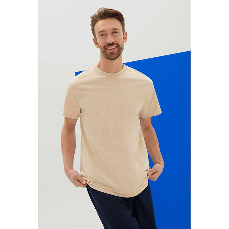 100% combed ringspun cotton Soft hand feel Performs at 60 degree wash Crew neck with cotton/ lycra® rib twin needle stitching Self-fabric shoulder to shoulder taping. Fabric: 100% cotton* *Heather Grey 97% cotton, 3% polyester Weight: White – 190gm/m2 Colour – 195gm/m2