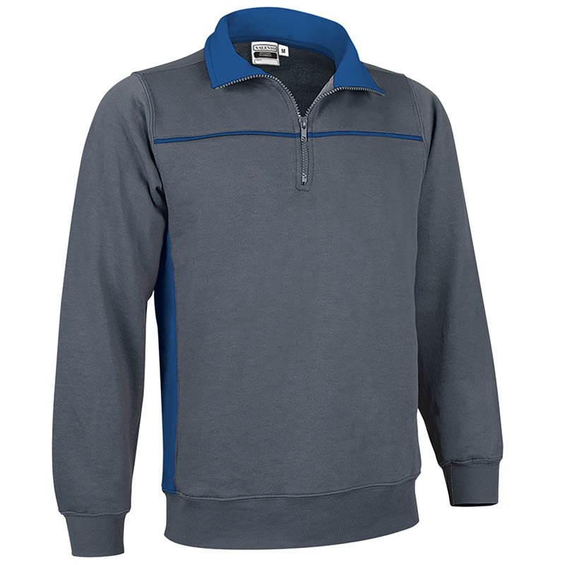Two-Tone Half-Zip Work Sweatshirt.Made of durable and long-lasting plush cotton-polyester blend fabric with an inner brushed for optimal thermal insulation and extra comfort.Stand-up collar with half-zip opening offering versatility for warmth or additional ventilation based on the season.Elasticated ribbed cuffs and waistband for comfortably fitting.Neutral base colours complemented by vibrant hues on side stripes, chest piping and inner collar, adding a striking contrast to this sweatshirt. Suitable marking methods: screen printing, embroidery, transfer printing, badges, shields. Ideal as workwear and uniforms, this Sweatshirt pairs with all THUNDER line items (T-shirt, trousers, polo shirts, fleece jacket, vest and softshell jacket).
