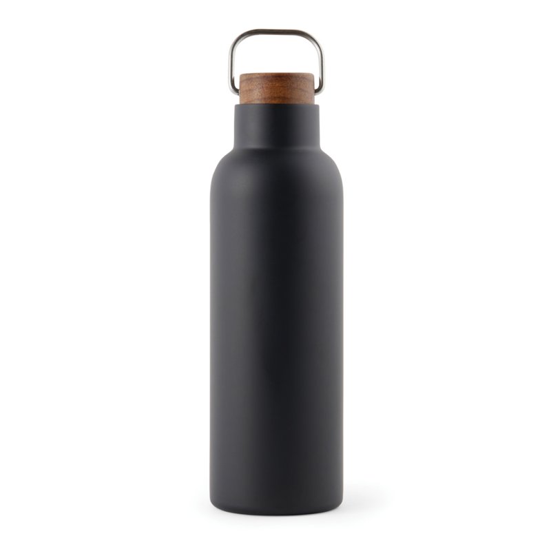 Elegantná termo fľaša Ciro s uzáverom z akáciového dreva s kovovým pútkom pre ľahký prenos. Akátové drevo je organický materiál, u ktorého sú rozdiely v odtieni a farbe prirodzenými vlastnosťami. Dvojitá stena z RCS certifikovanej recyklovanej ocele na uchovanie nápoja horúceho alebo studeného po dlhú dobu. RCS (Recycled Claim Standard) je globálny štandard, ktorý umožňuje overiť použitie recyklovaného materiálu v produkte naprieč celým dodávateľským reťazcom. Celkový podiel recyklátu podľa váhy produktu: 79%. Fľaša sa dá ľahko čistiť, iba na ručné umývanie. Balené v FSC® darčekovej kraftovej krabičke. Objem: 800 ml.