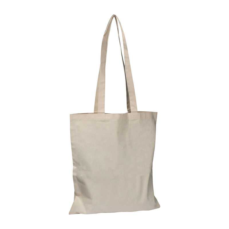 Nákupní taška z recyklované předspotřební bavlny (70 % recyklovaná bavlna a 30 % RPET) s dlouhými uchy. 140 gr/m2. Tato položka se po otisku může zmenšit.