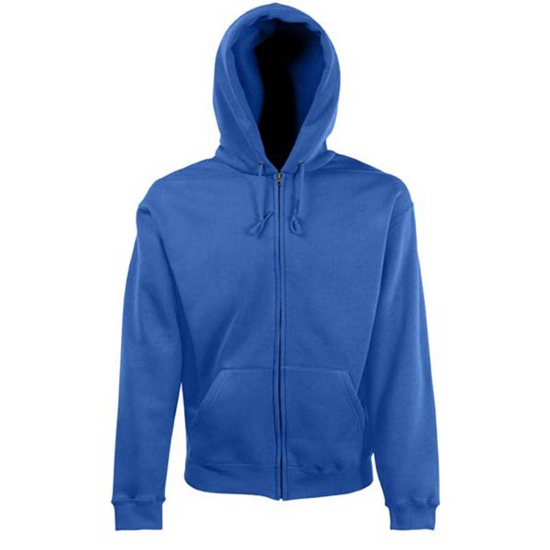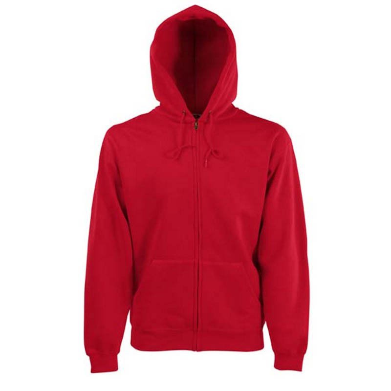 Fruit of The Loom, Double fabric hood, New self-coloured flat draw cord, Narrow covered zip for enhanced printability, Single jersey back neck tape, Two front pouch pockets, Waist and cu