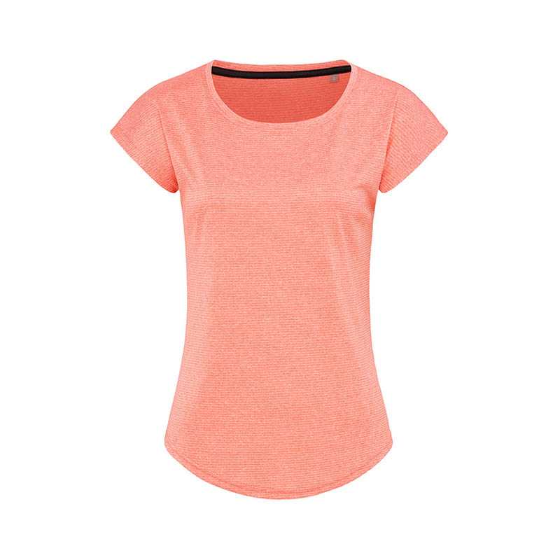 Eco-friendly from recycled material. Modern with a heathered look made from ca. 4 bottles. Especially flattering shape for ladies with overcut sleeves and a rounded hem.eco-friendly functional fabric, made from recycled plastic bottles (4 per T-shirt), ACTIVE-DRY°: quick-drying, moisture-wicking and breathable material, rounded hem, heathered look, overcut sleeves, self-fabric collar, neck tape, side seams, premium woven size label in the collar, tear-away care label in the side seam