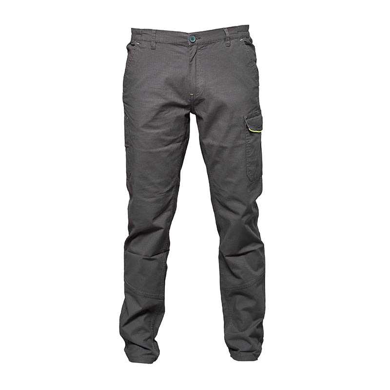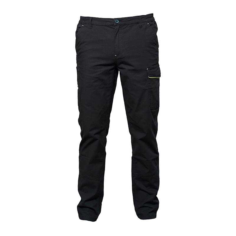 ELASTIC MULTI-POCKET PANT 98% cotton – 2% elastane - Pre-washed fabric - Two front pockets - One side pocket with velcro - A back pocket for ruler or tools - One back pocket with velcro - Two reflective bands h. 5 cm - Triple stitching - Contrasting reinforcement stitching - Elastic waist and large loops