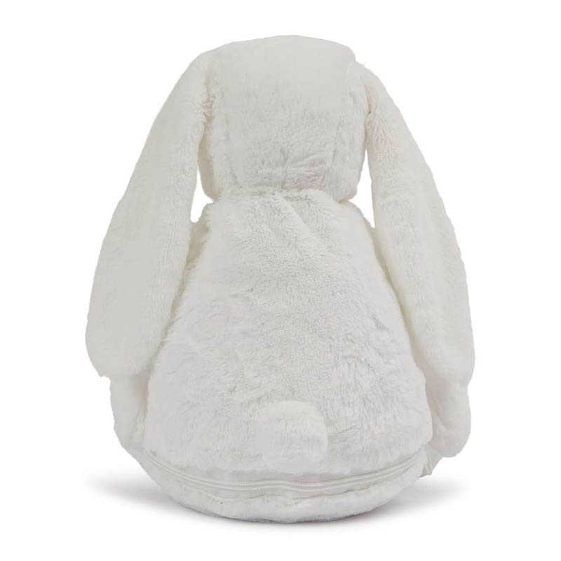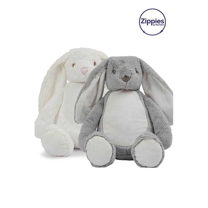 100 % polyesterový plyš.Zippie Bunny Rabbit.Zips naspodu králika pre prístup k brušku na výšivku.Vyberateľná vnútorná výplň.Zadok a nožičky vyplnené fazuľkami.V súlade s predpismi EN71.Vhodný pre všetky vekové kategórie.Iba ručné pranie.