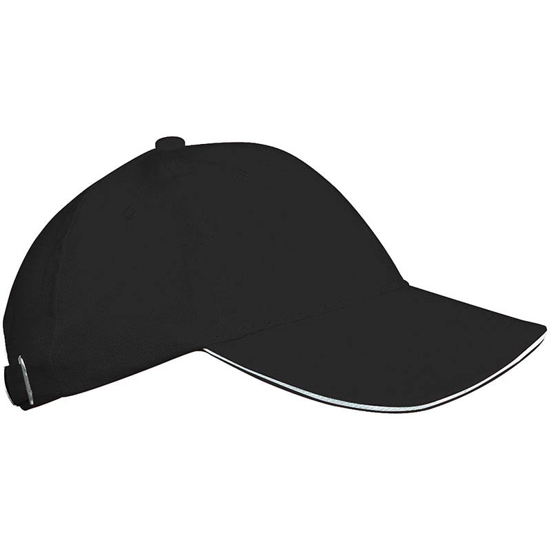 100 % kartáčovaný keper z ťažkej bavlny.Čiapka so 6 panelmi.Predtvarovaný kontrastný sendvičový šilt.Nastavovač veľkosti.Kovová pracka a pútko.