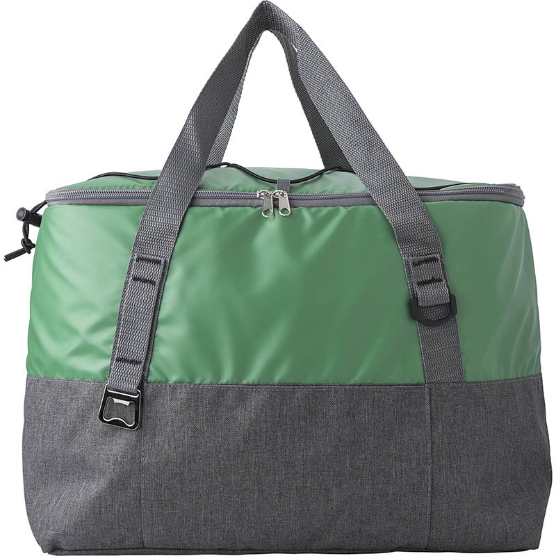 Polycanvas (600D) cooler bag with PEVA interior lining and adjustable straps.