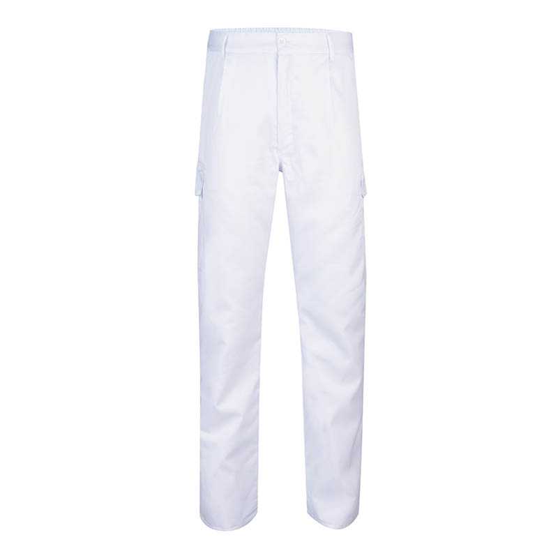 Front closure with zip and button Reflective tape on the lower legs Elastic waistband Back safety seam Darts Six pockets: 2 French pockets 2 patch pockets with front bellows, cover fla